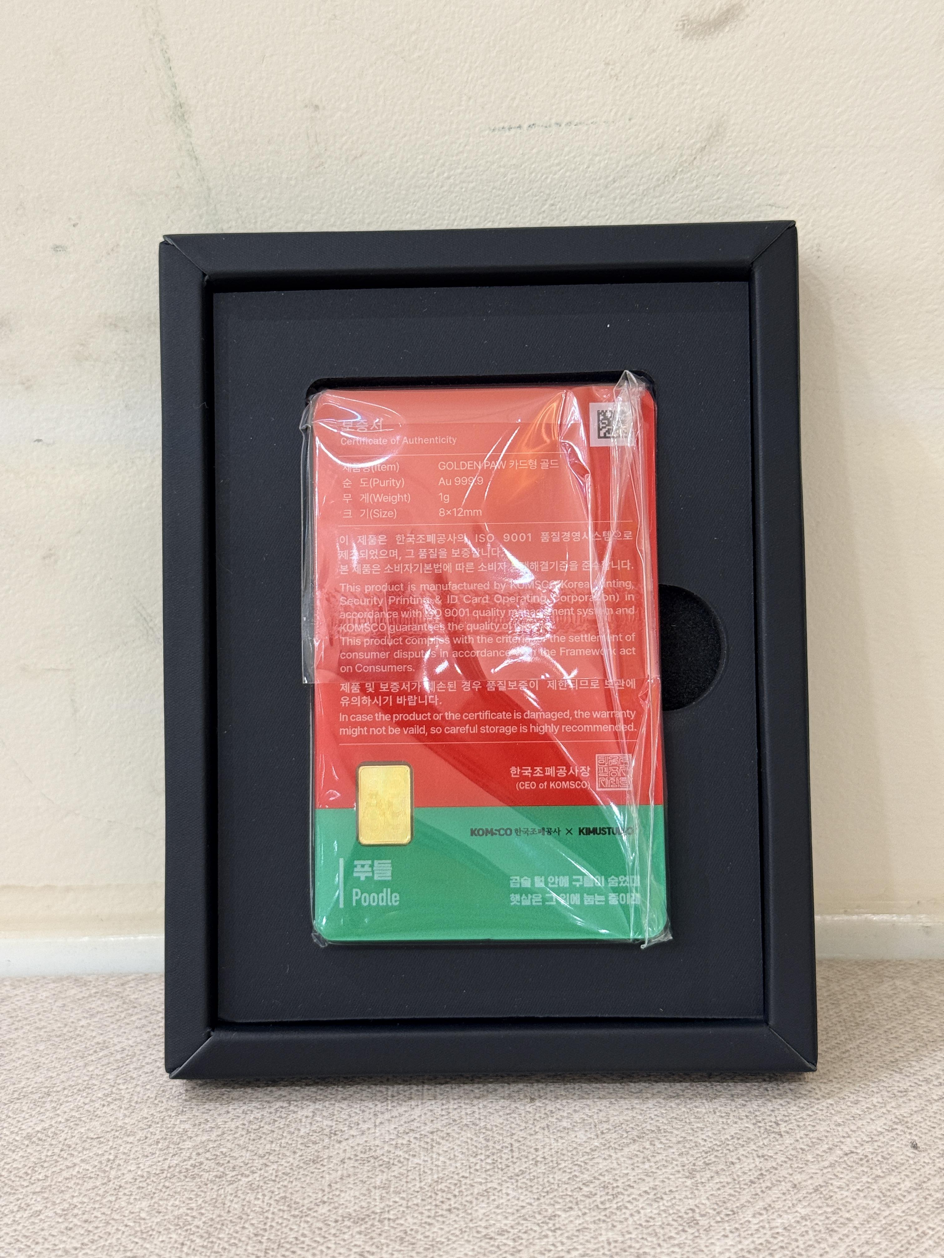 한국조폐공사 Golden Paw (골든 파우) 카드형 골드 1g(푸들)