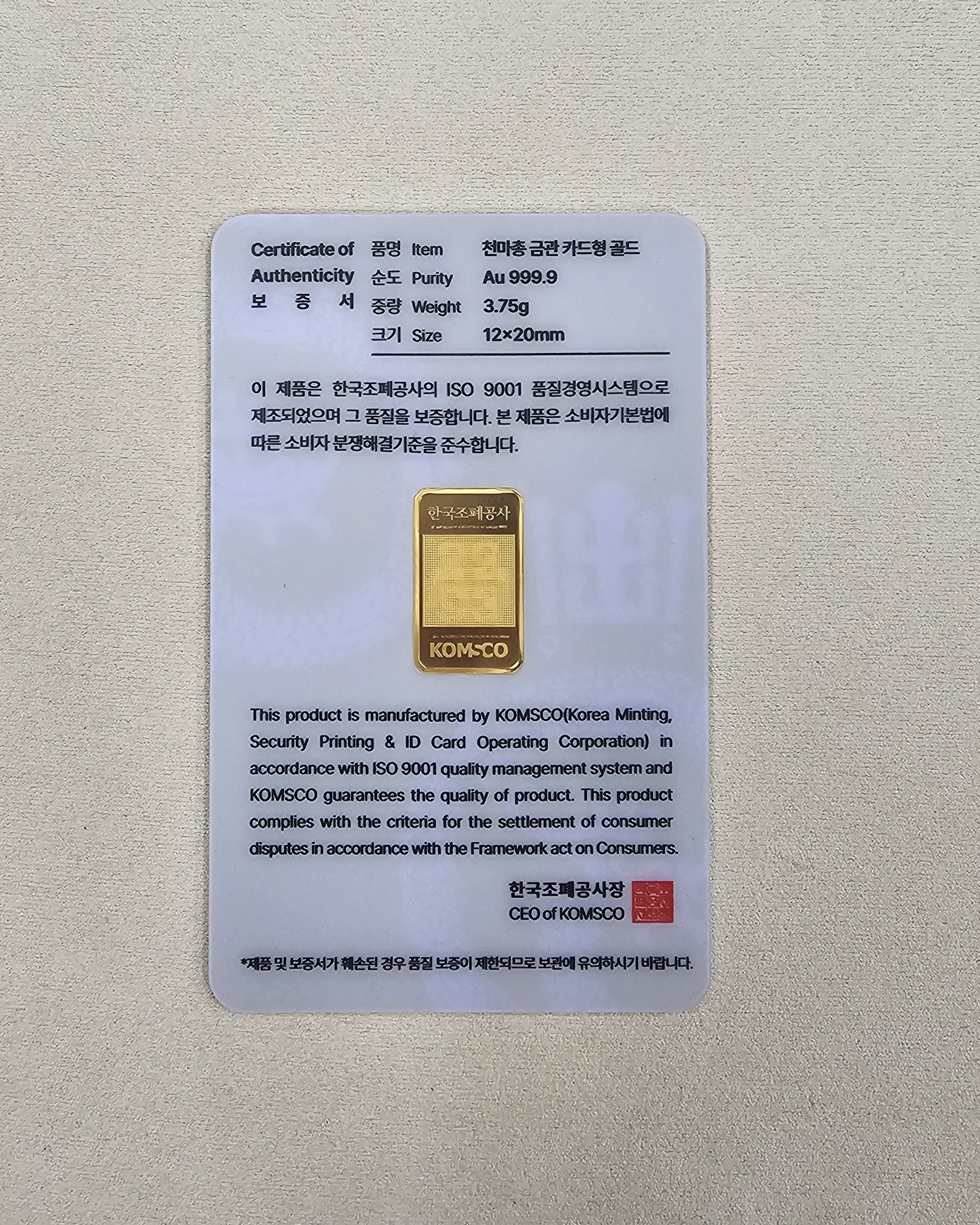 한국조폐공사 국보 천마총 금관 골드바 3.75g