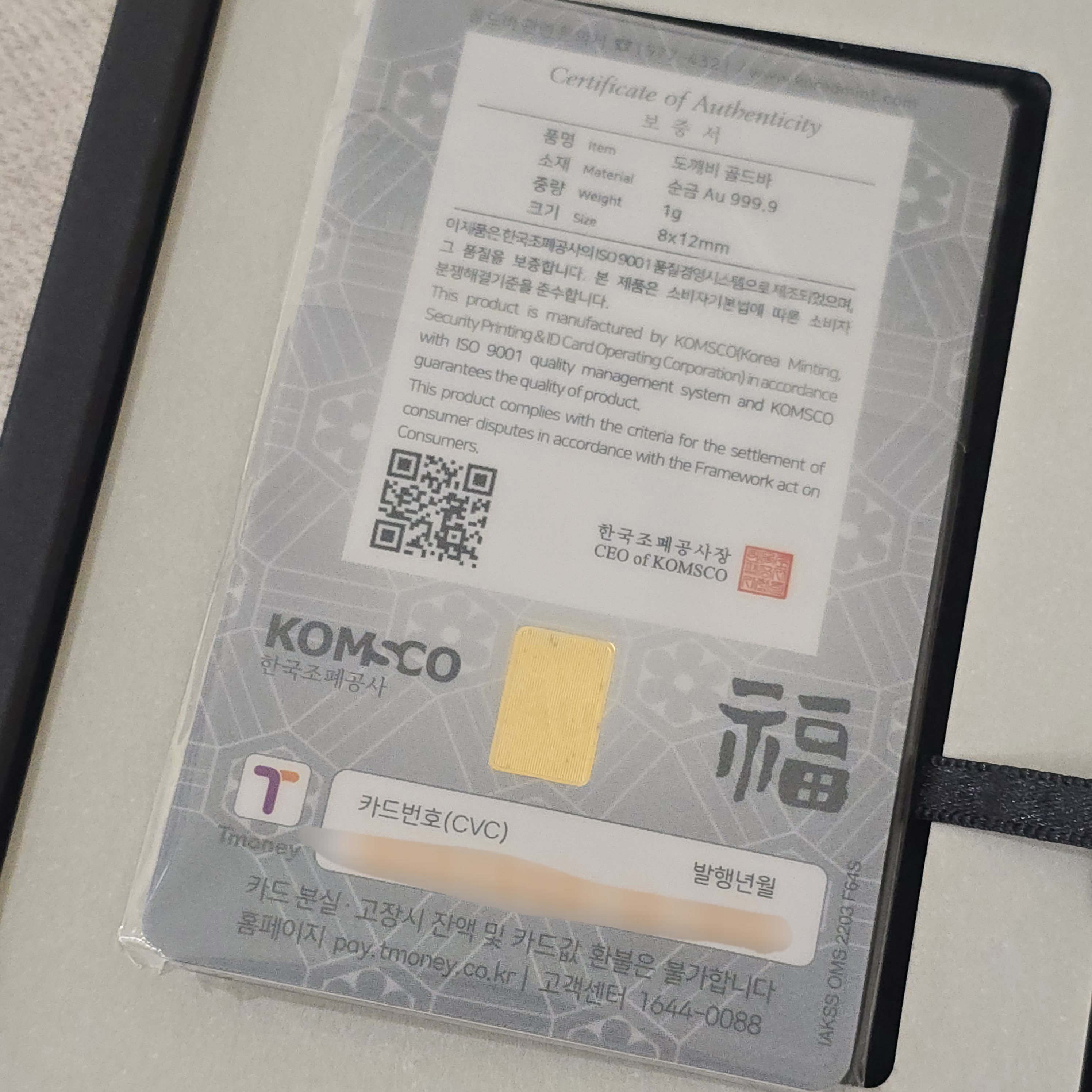 한국조폐공사 아트갤러리 도깨비 카드형골드바 1g
