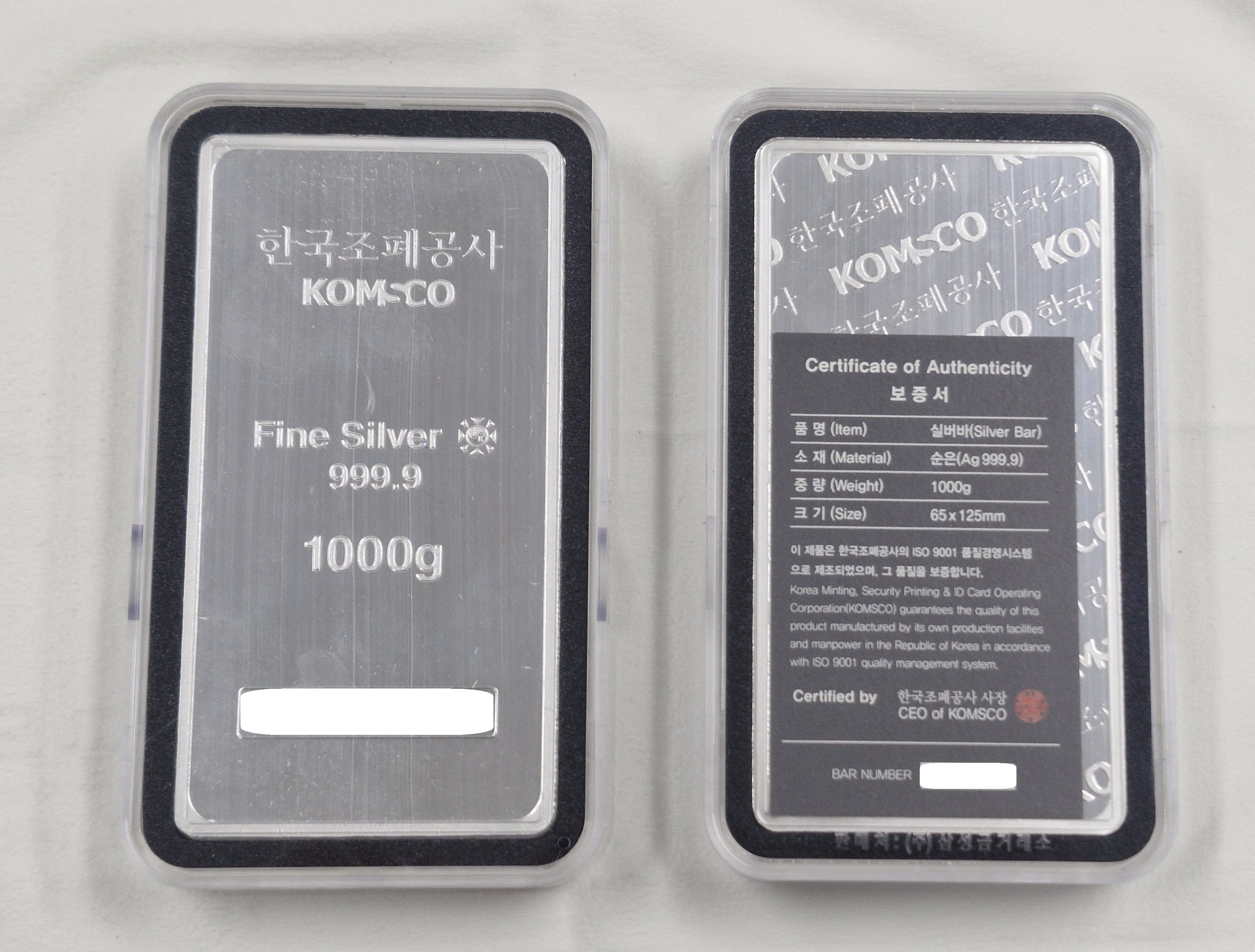 * 실버바 + 아크릴케이스 + 보증서 구성