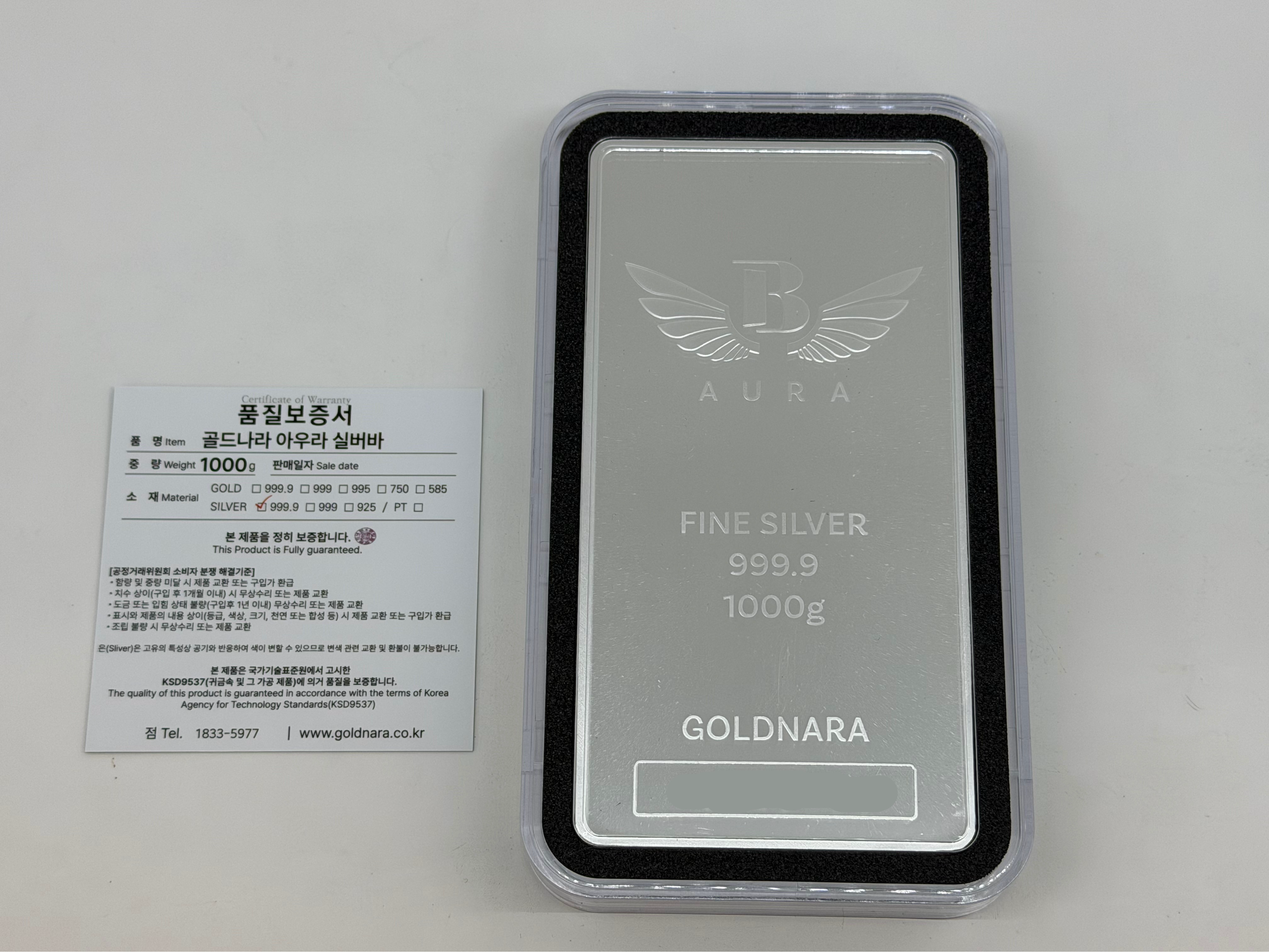 * 실버바 + 보증서 구성