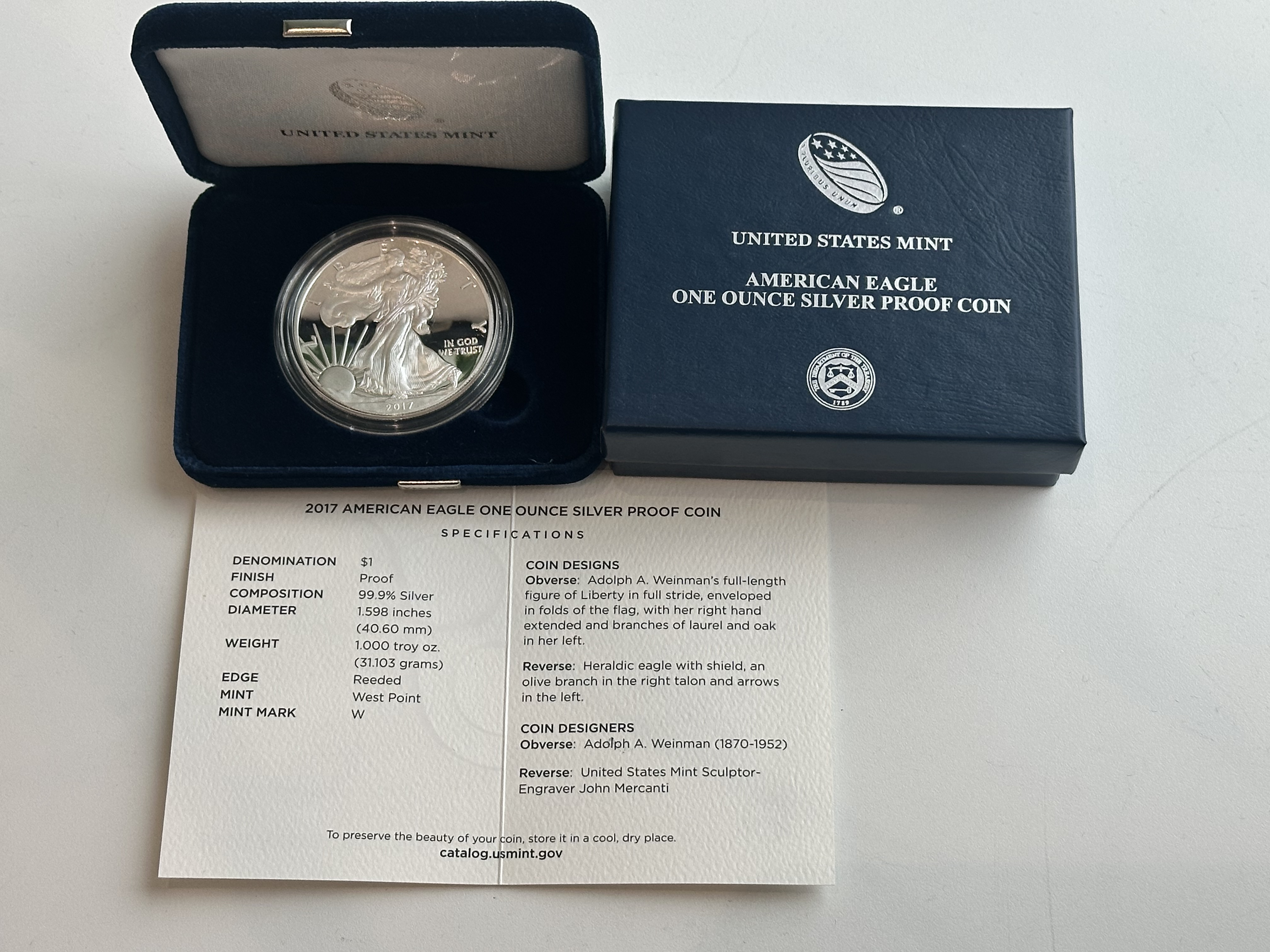 2017 1온스 실버 이글 푸르프 주화 1oz
