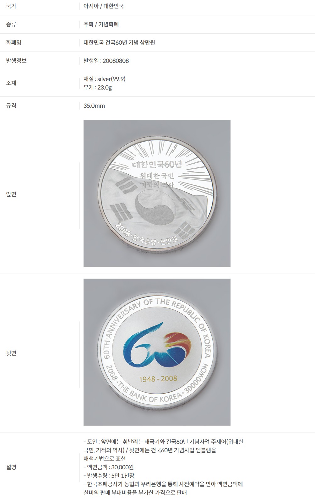 한국조폐공사 대한민국 건국60년 기념주화