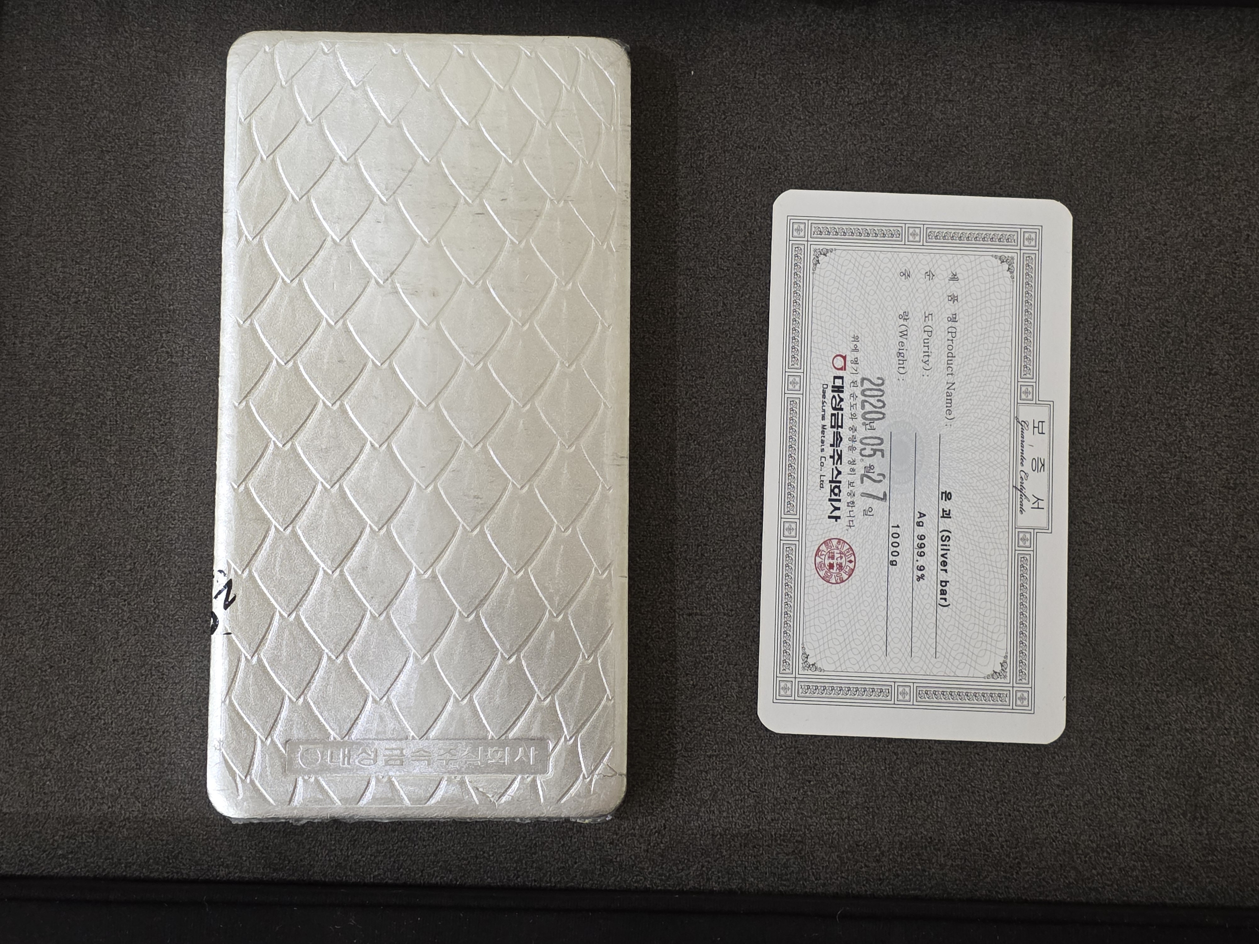 (스티커자국) 대성금속 그리핀 실버바 1000g